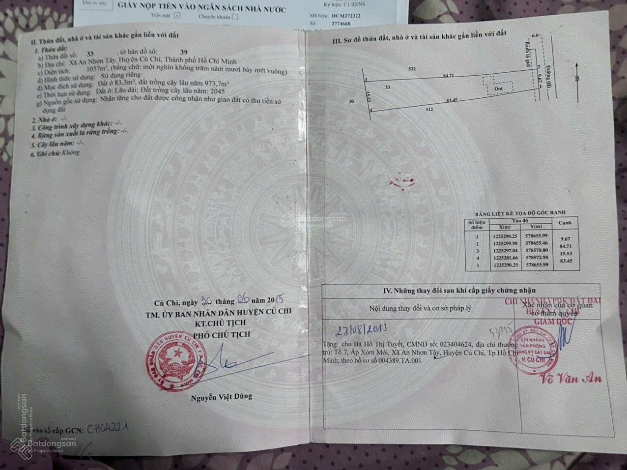 – Diện tích 10x83m nở hậu 15,5m (Tổng 1058m² có 83m thổ cư) quy hoạch KDC.